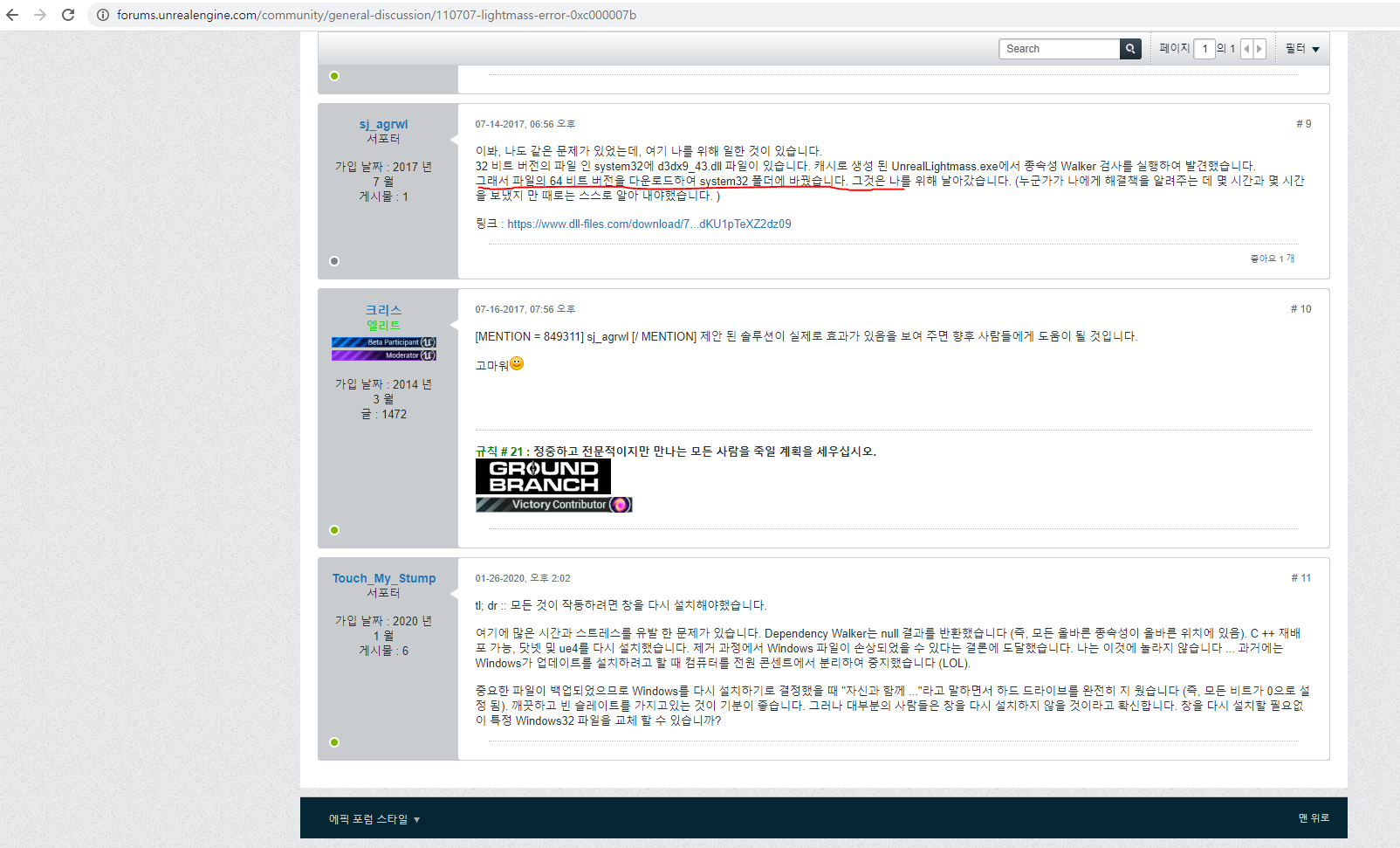 라이팅 빌드를 하는데, 이런 오류가 뜨며 안되는 분들이 계실겁니다.