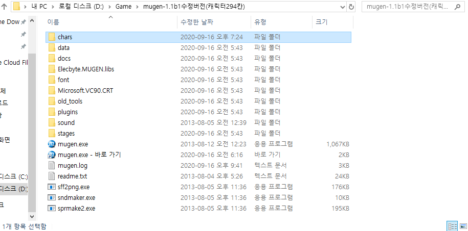 1. chars 폴더에 다운로드받은 캐릭터 폴더를 통째로 집어넣습니다.