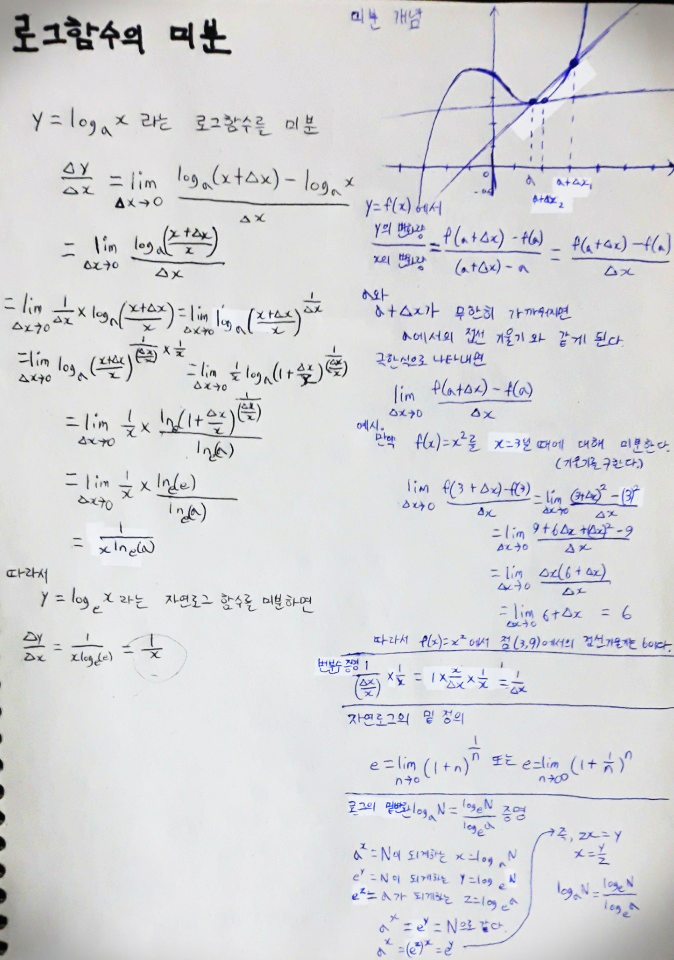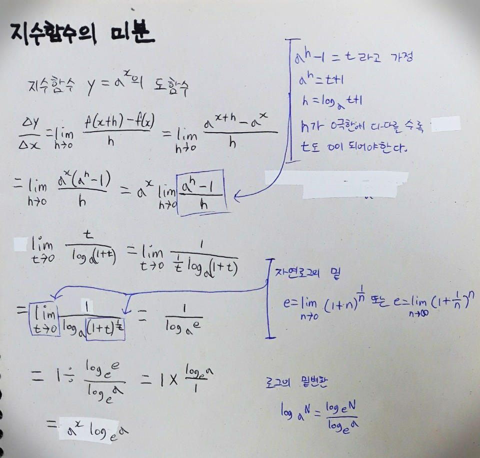 지수와 로그함수를 미분하기 위해 내용을 정리했습니다.