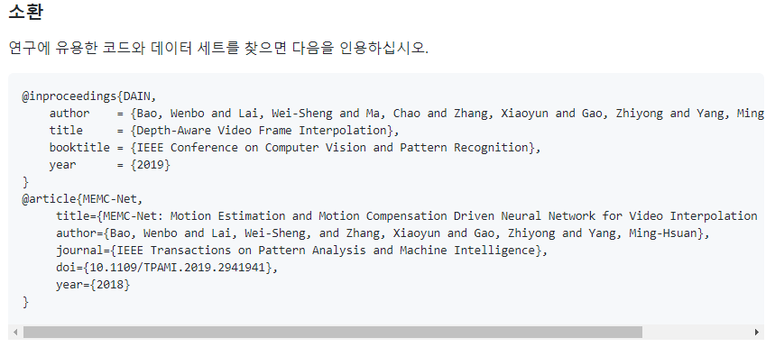 깃허브를 살펴보면 DAIN 알고리즘(깊이 인식 비디오 프레임 보간, Depth-Aware Video Frame Interpolation)을