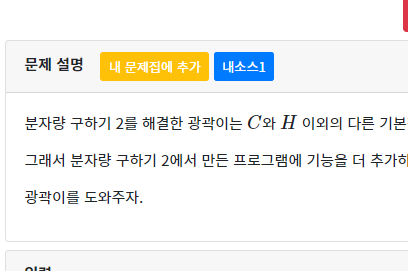 분자량 구하기 2를 해결한 광곽이는 C와 H 이외의 다른 기본적인 원소들이 포함된 화학식의 화학식량도 구할 수 있으면 좋겠다는 생각을 했다.