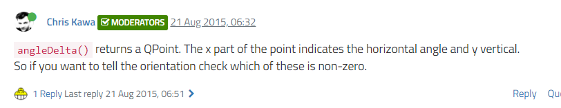 번역 : angleDelta() QPoint를 반환합니다. 점의 x 부분은 수평 각도와 y 수직을 나타냅니다.