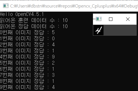 std::cout << i << "번째 이미지 정답 : " << (int)labelVec[i] <<std::endl;