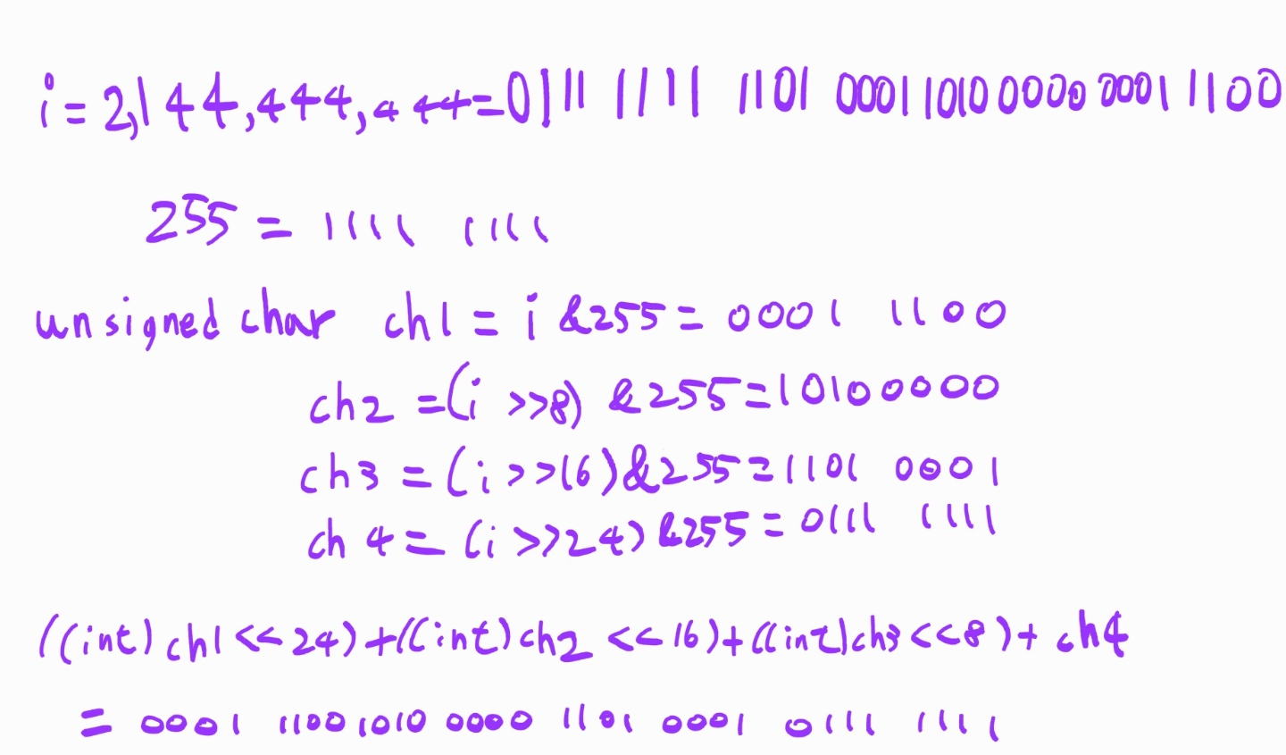 ch2 = (i >> 8) & 255; //i를 8비트만큼 시프트연산으로 버리고, 8비트만큼 AND연산으로 읽음