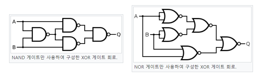 NOR 게이트만으로 XOR게이트를 구성한 회로도 있습니다.